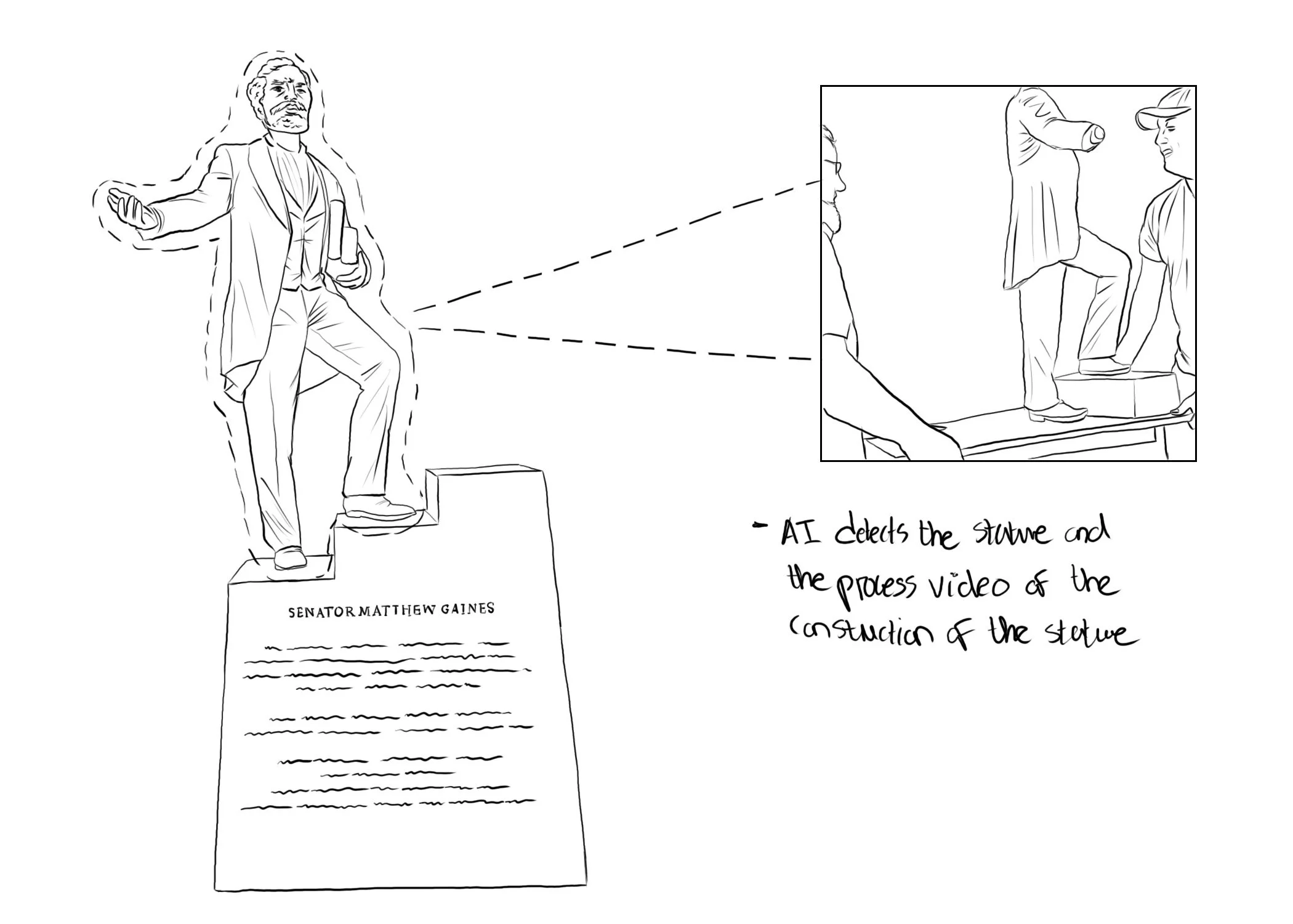 Working with Wyoming sculptors David Alan Clark and Mary Johnson Clark, we were able to scan a low-poly reference sculpture of the life-size Matthew Gaines statue so that it was detectable by our application from any direction in a near 365-degree space.